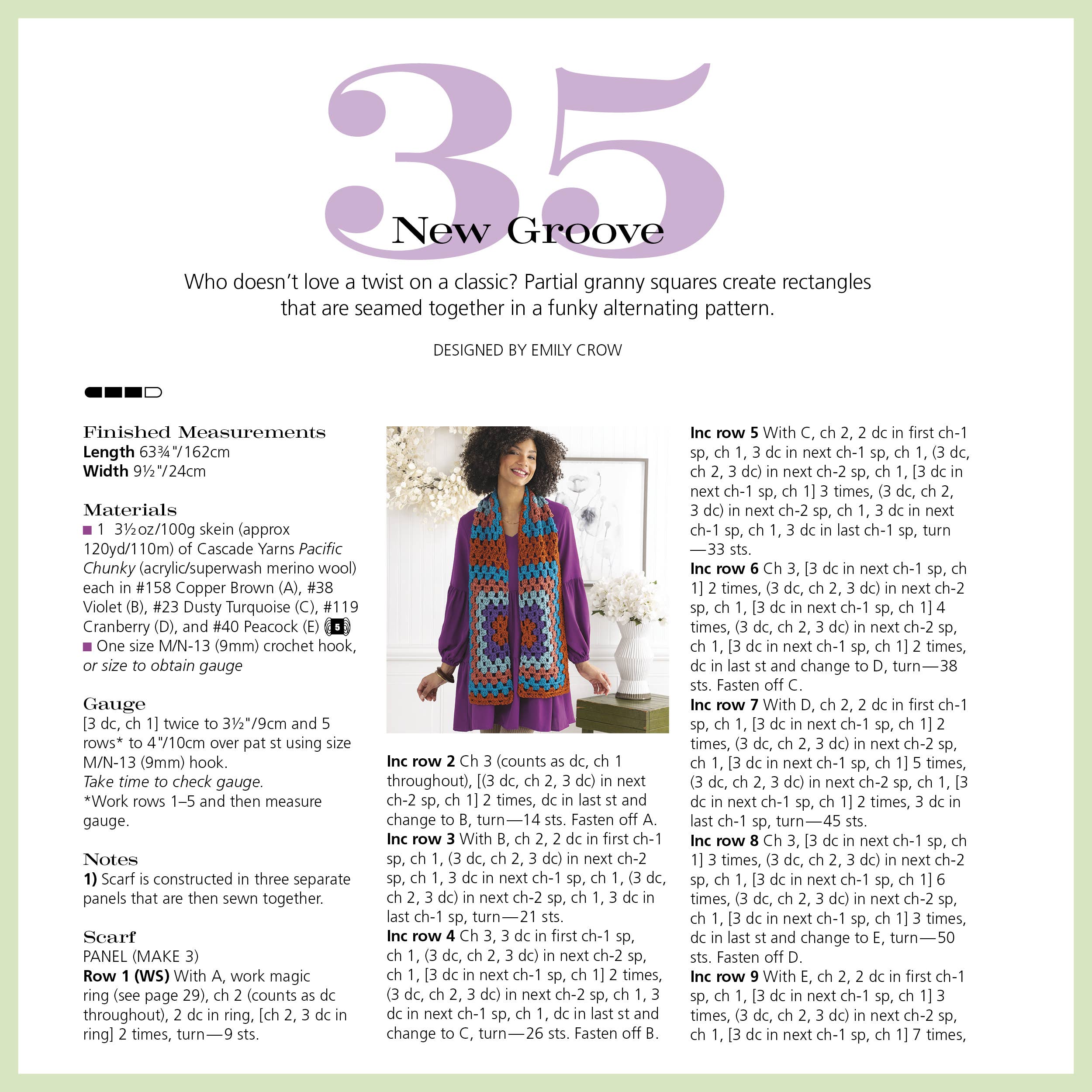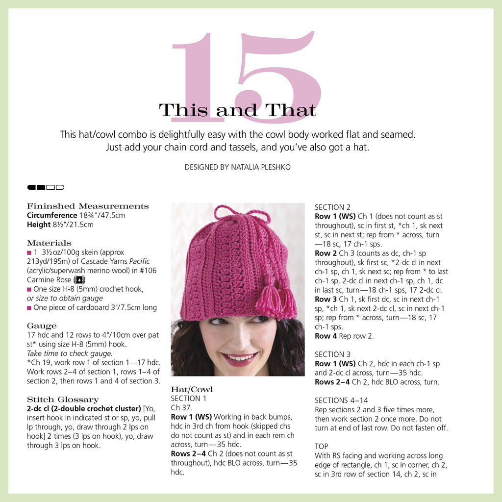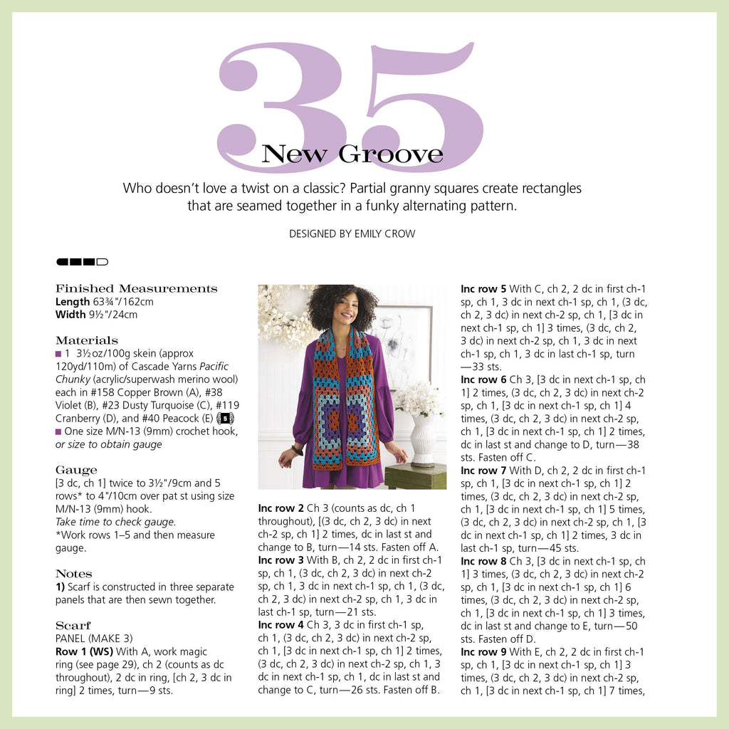 From hats and scarves to shawls, mittens, blankets, and garments, each project is designed to teach new techniques while keeping you inspired. Sidebars throughout offer tips, tricks, and insights to help you grow as a crocheter. All patterns are worked in Cascade Yarns’ Pacific—a soft, durable, and affordable blend available in dozens of vibrant colors. Start your crochet journey with confidence—and create pieces you’ll be proud to wear and share.